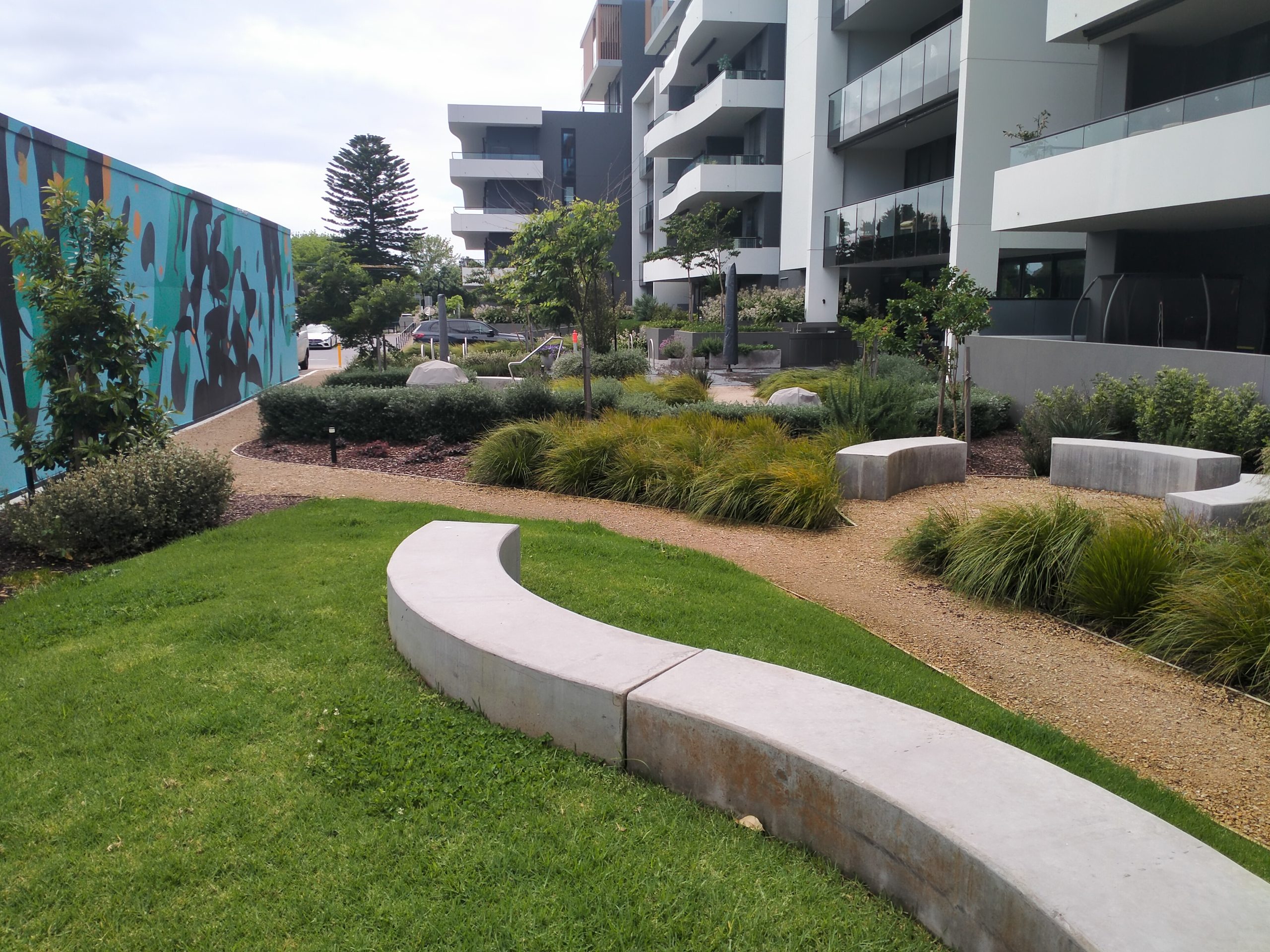 Working in collaboration with the developers, architects and the entire planning team, the design features extensive indigenous planting, including massed groundcovers and native grasses, to create a resilient, low-maintenance landscape that reflects the local environment of the Bayside Council. Curved bench seating, communal gathering spaces, BBQs, and firepits invite residents outdoors, encouraging a strong sense of place and community.